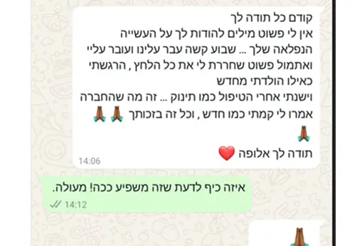 הטיפול מחזיר לגוף את האיזון והריפוי הדרושים לו,
